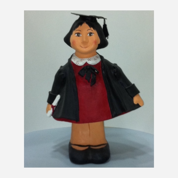 Muñecos realizados con pasta de papel y cartón, esculpidos y pintados a mano.