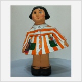 Muñecos realizados con pasta de papel y cartón, esculpidos y pintados a mano.