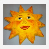 Sol realizados con pasta de papel y cartón, esculpidos y pintados a mano.